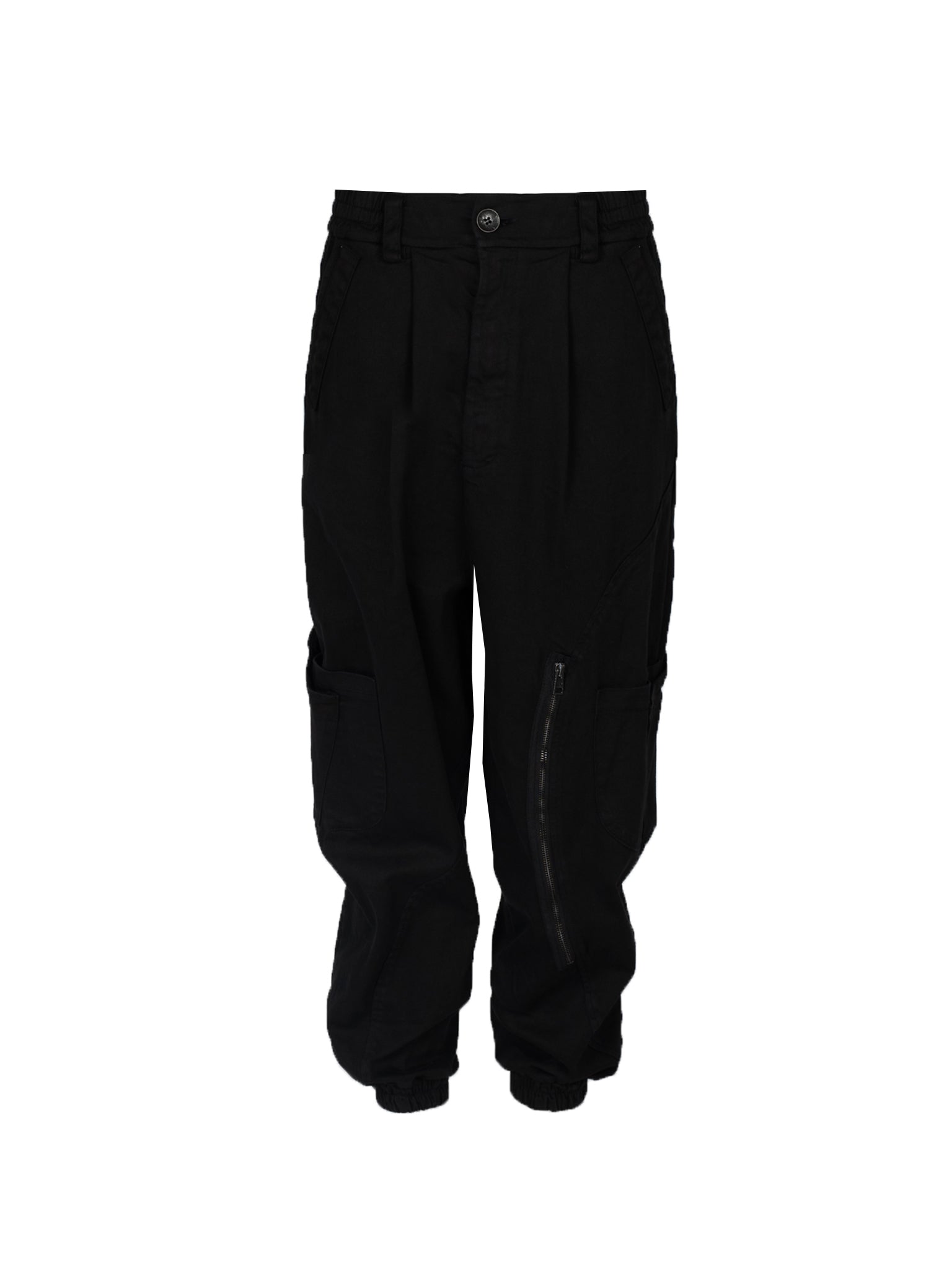 Nogawki zakończone ściągaczem podkreślają nowoczesny krój, nadając spodniom sportowy, ale jednocześnie elegancki wygląd.