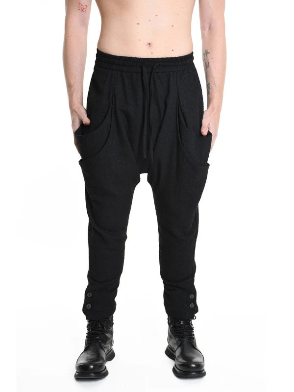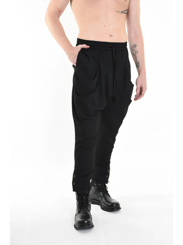 Z obniżonym krokiem, te spodnie dodają nieco streetwearowego charakteru, oferując jednocześnie wygodę i styl, który idealnie sprawdzi się zarówno w codziennych, jak i bardziej casualowych stylizacjach.