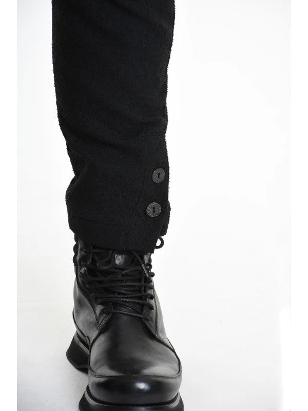Nogawki zapinane na metalowe guziki dodają elegancji i oryginalności, umożliwiając swobodne dostosowanie stylu do własnych potrzeb i preferencji.