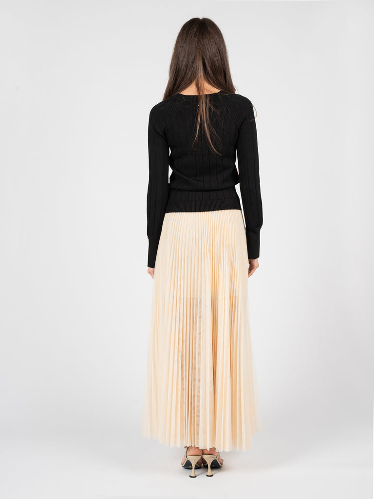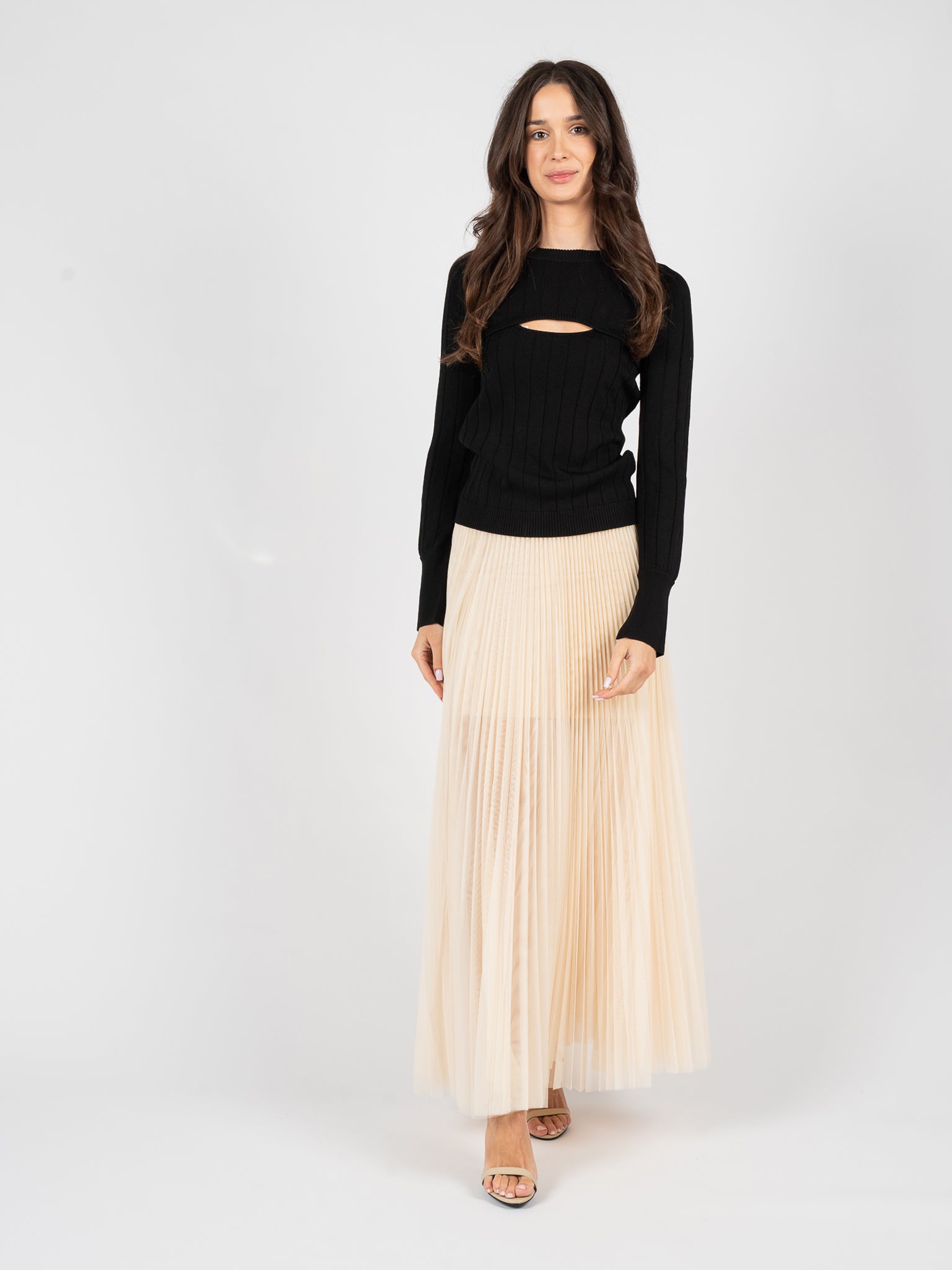 Z okrągłym dekoltem, który subtelnie podkreśla linię szyi, dodając elegancji i klasy każdej stylizacji, niezależnie od okazji.