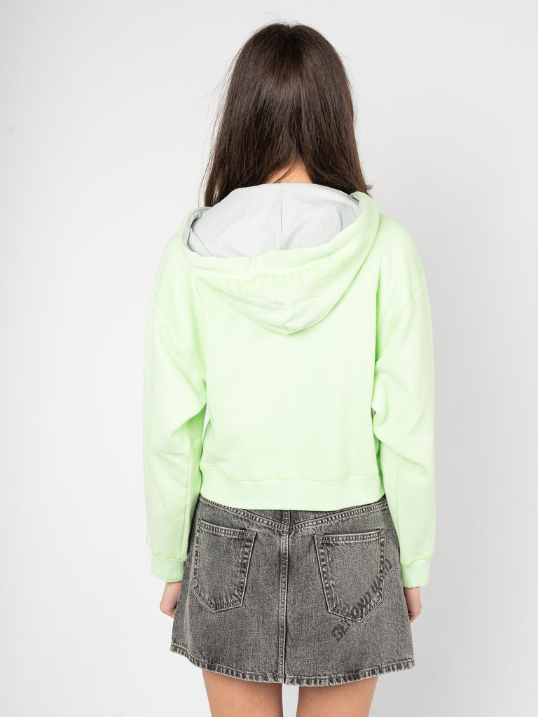 Z przodu i na kapturze nadruk z nazwą marki jest subtelnym, ale wyrazistym akcentem, który podkreśla unikalność bluzy, dodając jej charakteru i świadcząc o jej wysokiej jakości.