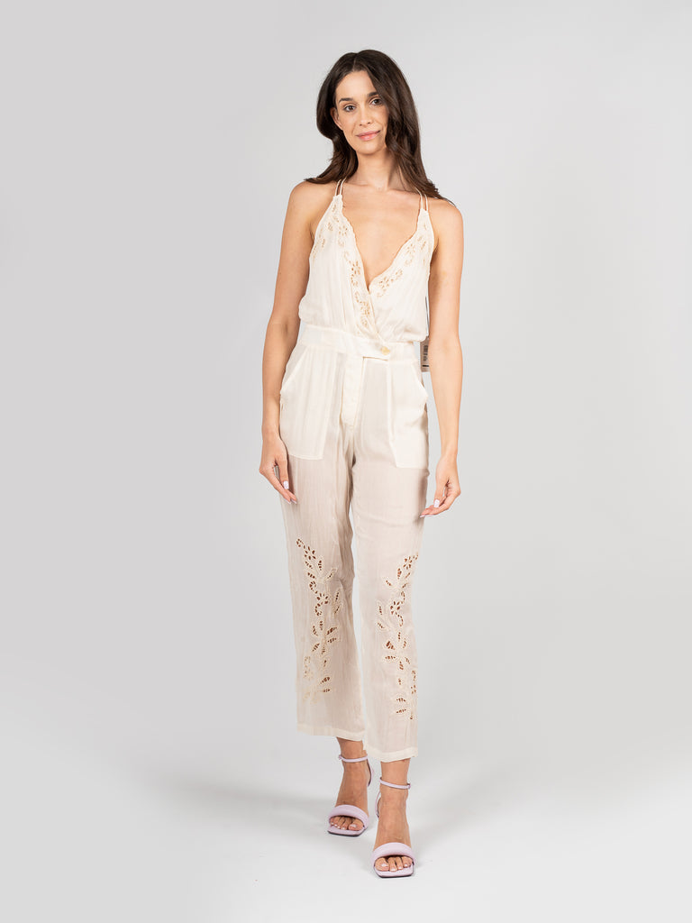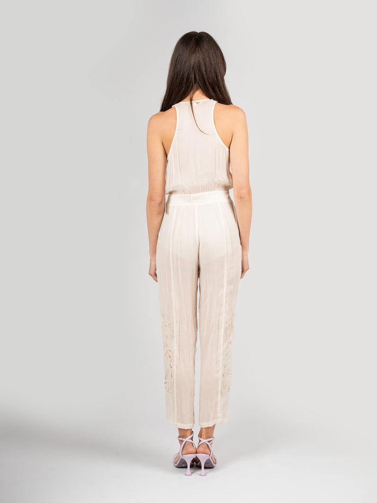 Ozdobiony haftem i koralikami, które tworzą unikalny wzór, kombinezon przyciąga uwagę i dodaje blasku, dzięki czemu nie potrzebujesz już wielu dodatków, by zabłysnąć.