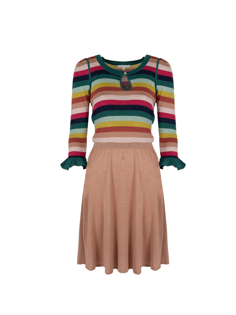 Okrągły dekolt nadaje sukience klasycznego wyglądu, jednocześnie podkreślając szyję i dodając delikatności każdej stylizacji.