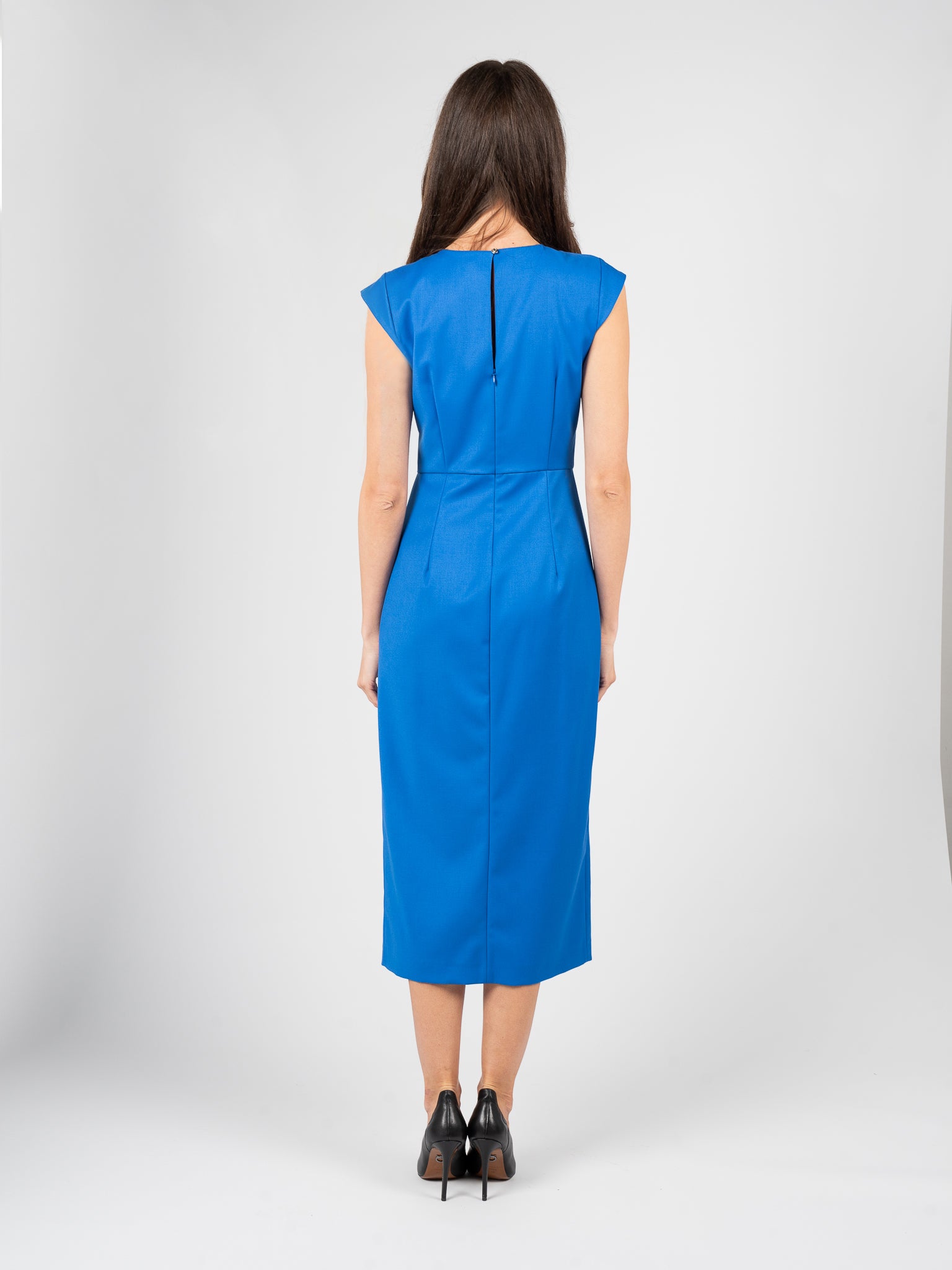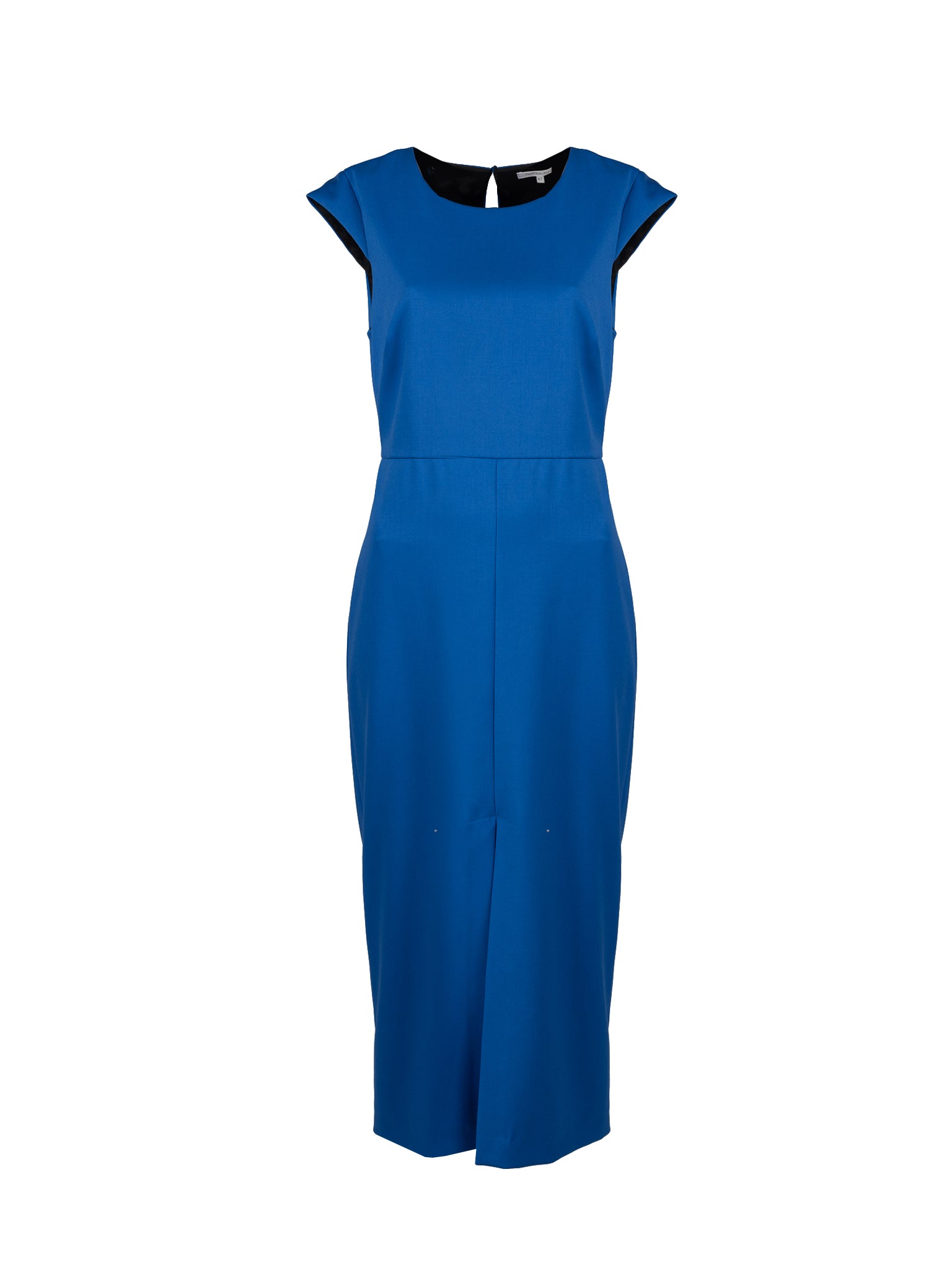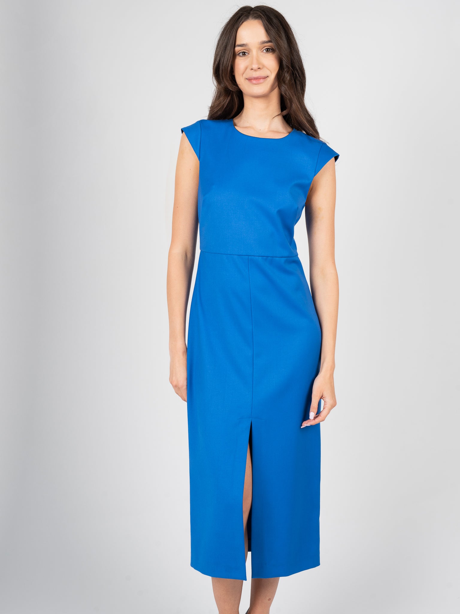 Z rozcięciem z przodu, które dodaje odrobinę pikanterii i pozwala na swobodę ruchów, czyniąc sukienkę nie tylko stylową, ale i praktyczną.