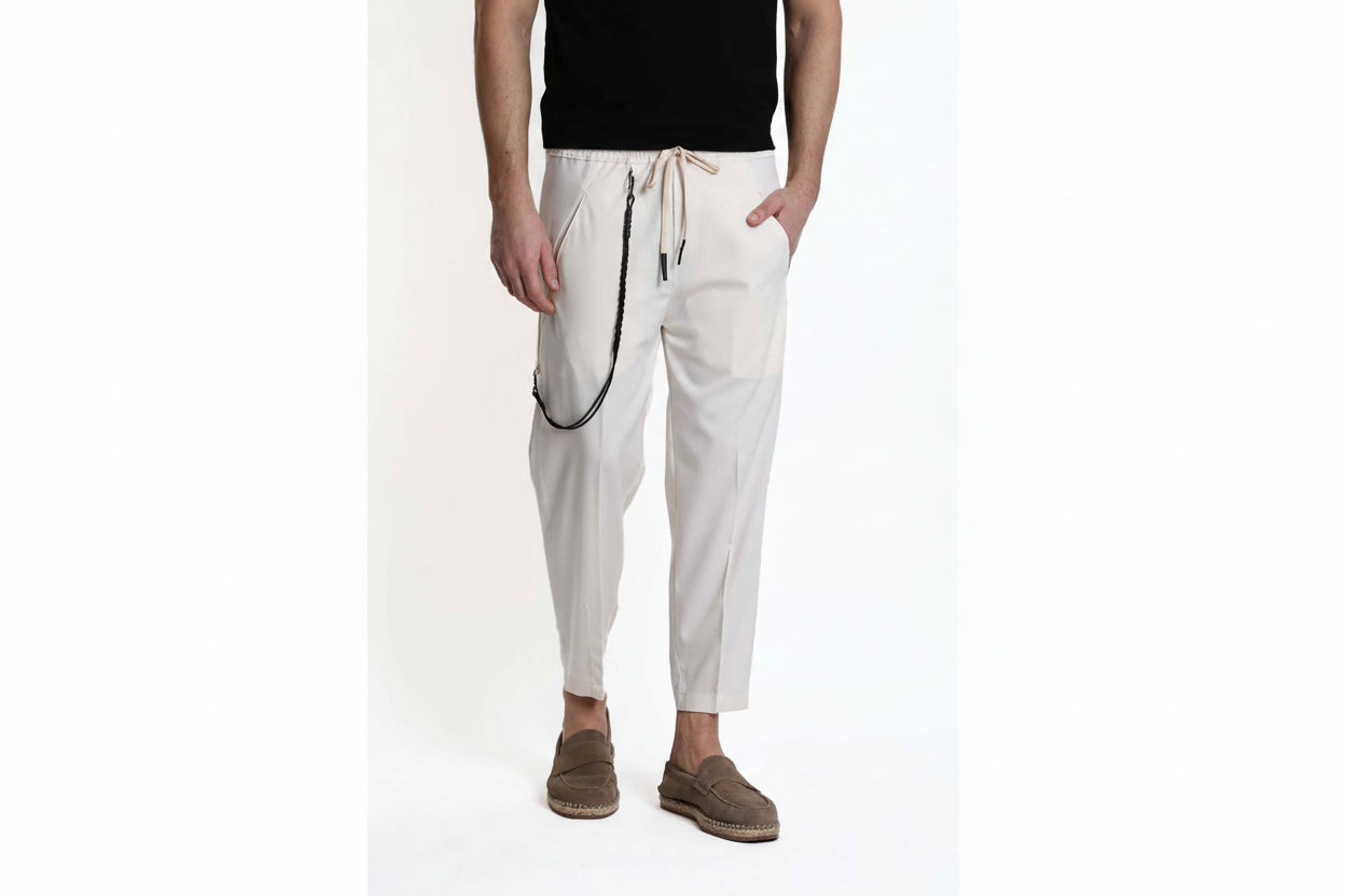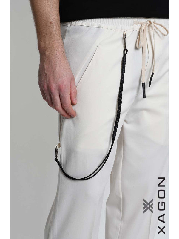 Z prawej strony odpinany łańcuszek to modny detal, który dodaje unikalnego charakteru i pozwala na personalizację stylizacji według własnych upodobań. Ten drobny, ale wyrazisty element, sprawia, że spodnie zyskują oryginalny wygląd, który z pewnością wyróżni Cię z tłumu i doda Twojej stylizacji indywidualnego charakteru.