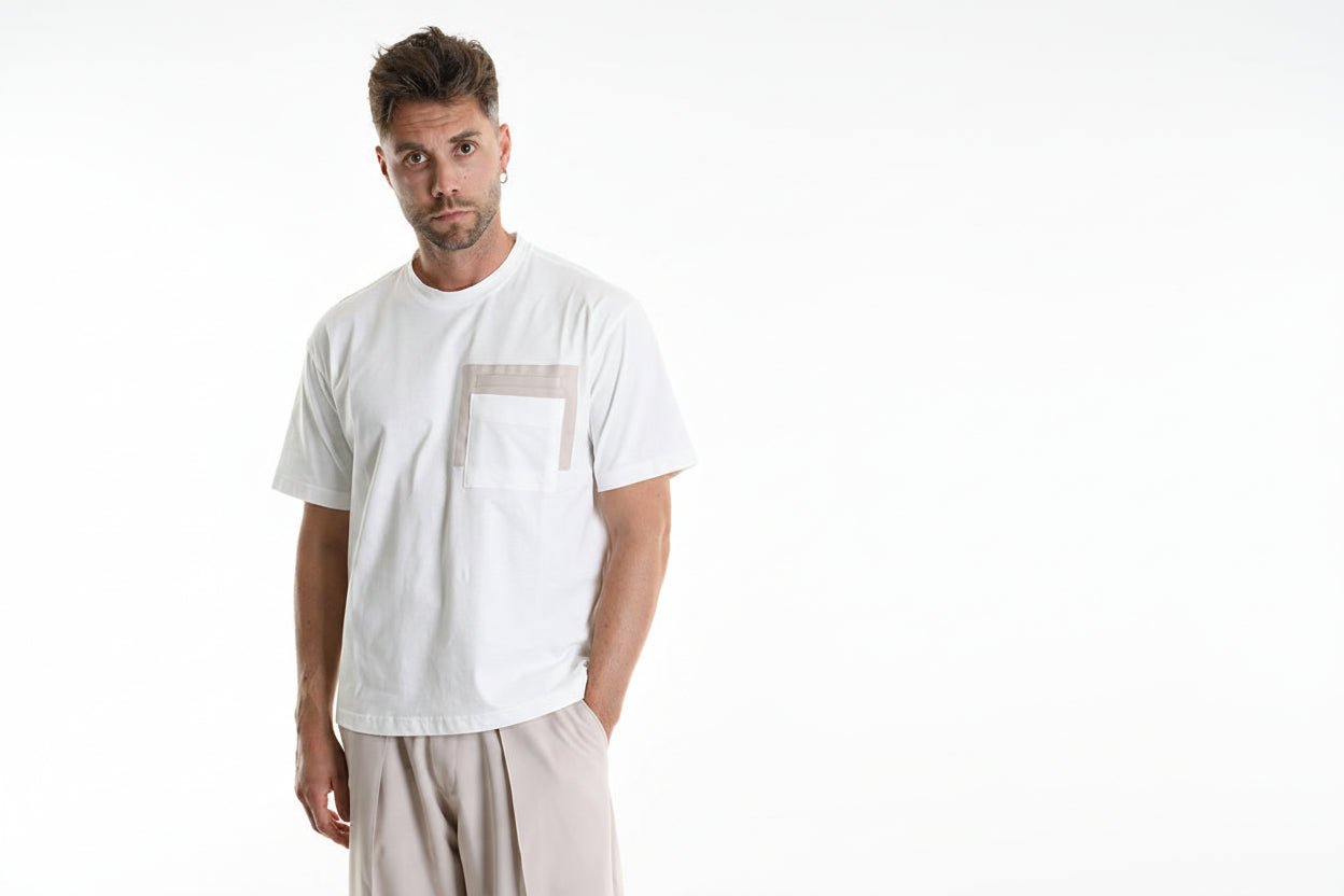 Na wysokości klatki piersiowej kieszonka nie tylko dodaje uroku i funkcjonalności, ale także podkreśla nowoczesny charakter produktu, umożliwiając przechowywanie drobnych przedmiotów, takich jak klucze czy karty.