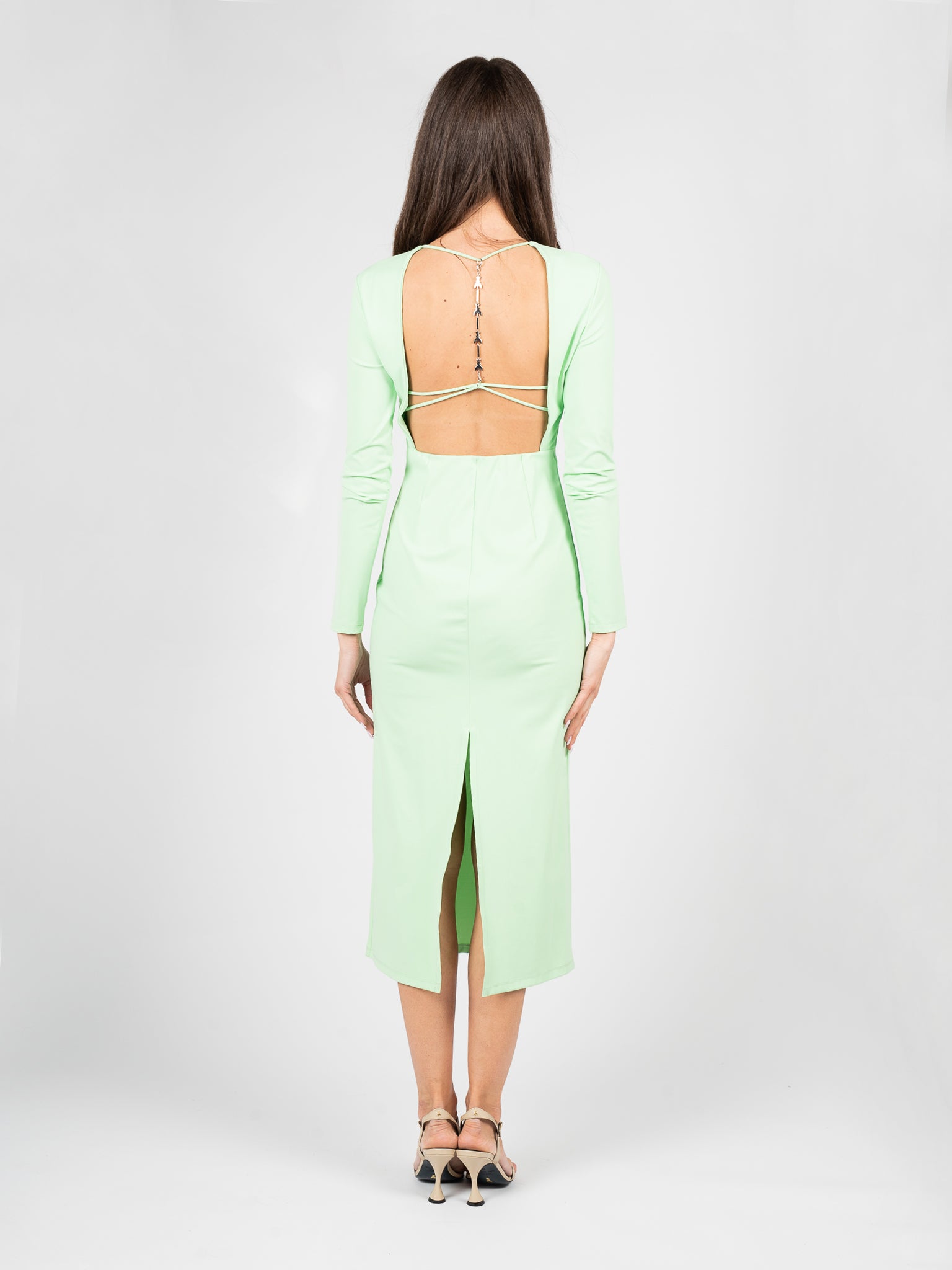 Z rozcięciem z tyłu, które nie tylko dodaje kreacji lekkości i seksapilu, ale także umożliwia swobodę ruchów, co jest szczególnie ważne podczas tańca czy długich godzin spędzonych na nogach.
