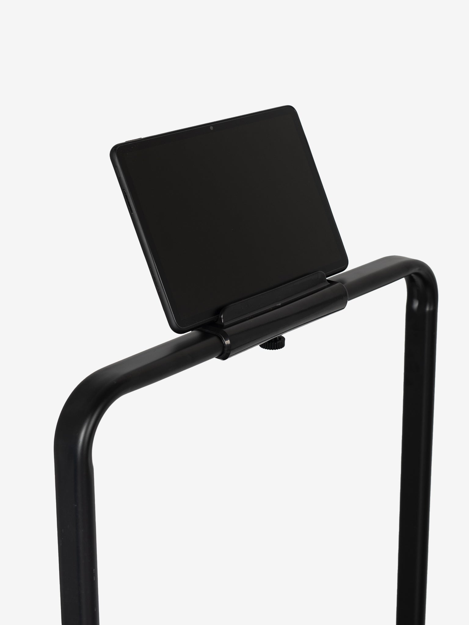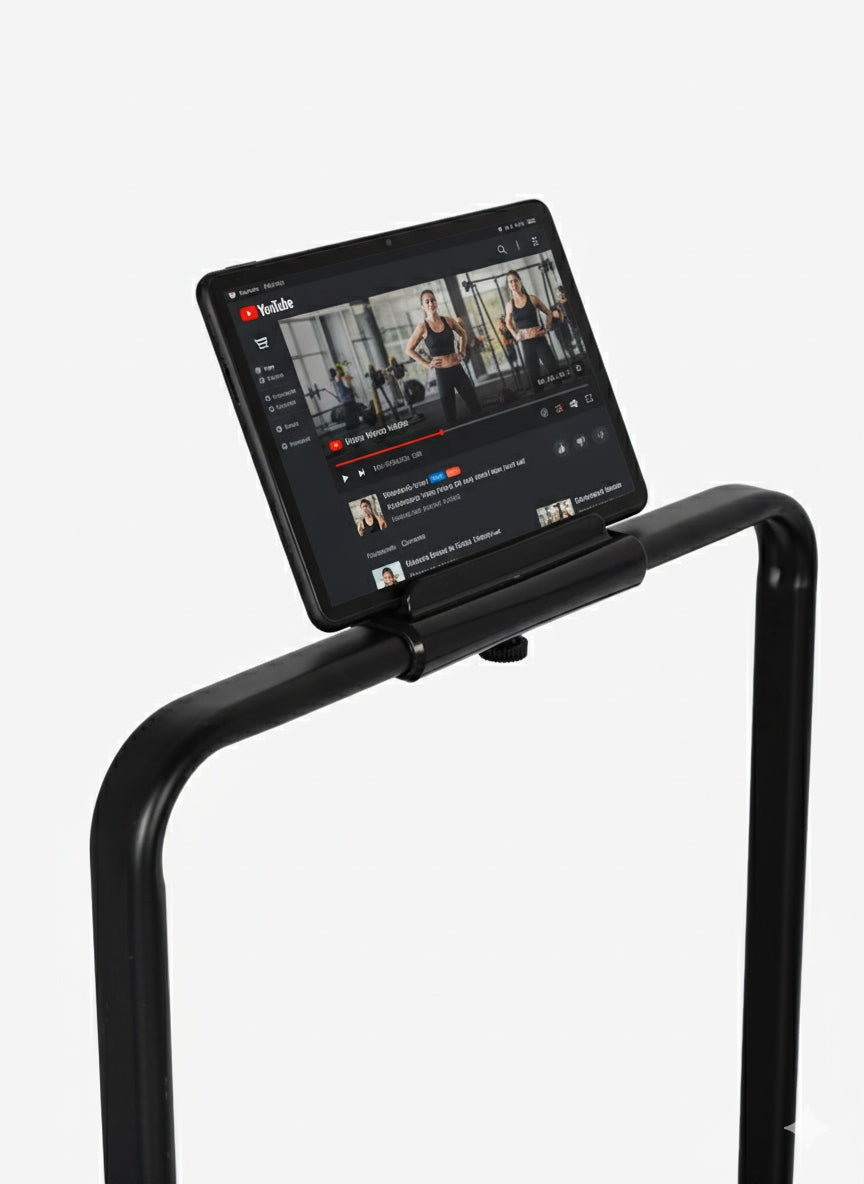 Uchwyt na telefon lub tablet umożliwia oglądanie filmów, słuchanie muzyki lub śledzenie aplikacji fitness w czasie treningu.