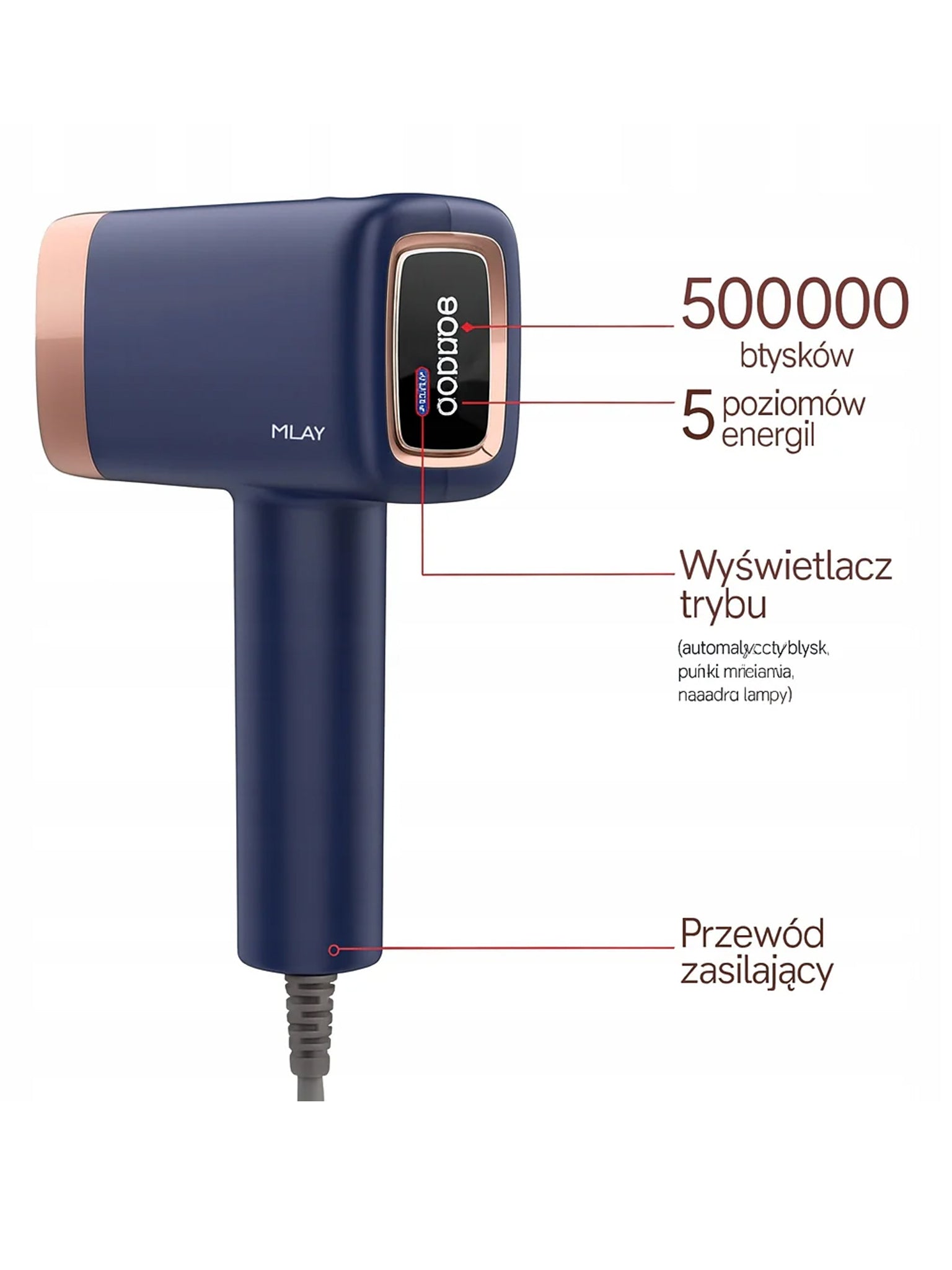 MLAY T14 to zaawansowane urządzenie IPL przeznaczone do trwałej redukcji owłosienia oraz kompleksowej pielęgnacji skóry. Łączy funkcje depilatora, urządzenia do fotoodmładzania oraz terapii światłem na trądzik. Dzięki wysokiej mocy, pięciu poziomom intensywności oraz systemowi chłodzenia ICE, zabiegi są skuteczne, szybkie i komfortowe nawet dla osób z wrażliwą skórą.