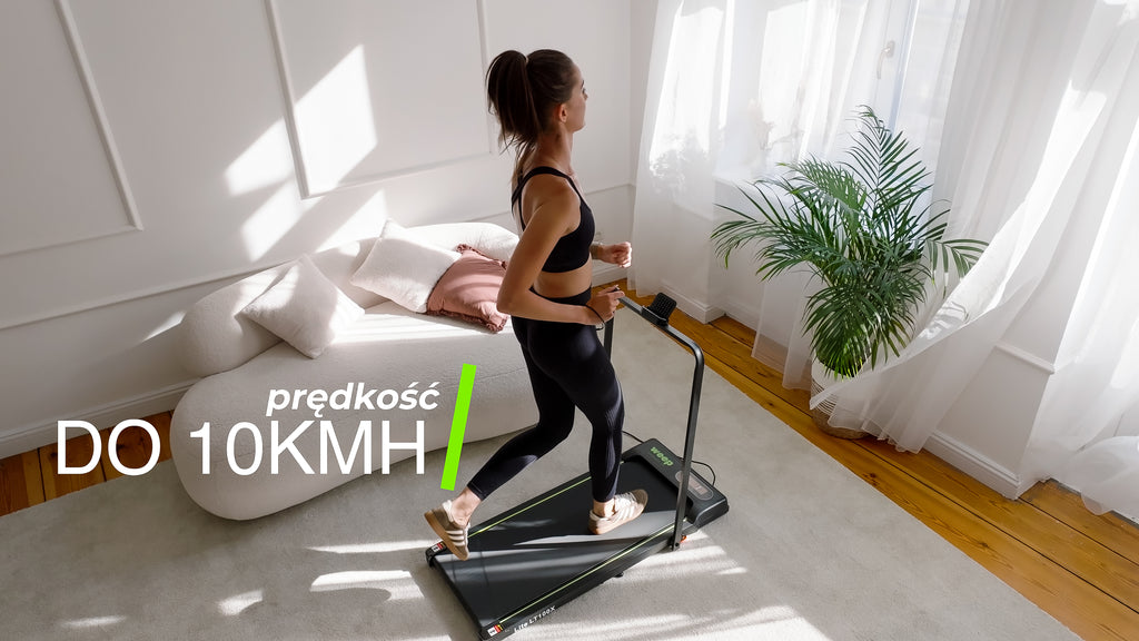 Model 2w1 łączy funkcję klasycznej bieżni do biegania z walking padem do spokojnych spacerów. Urządzenie jest lekkie, ciche i gotowe do użytku od razu po rozpakowaniu.