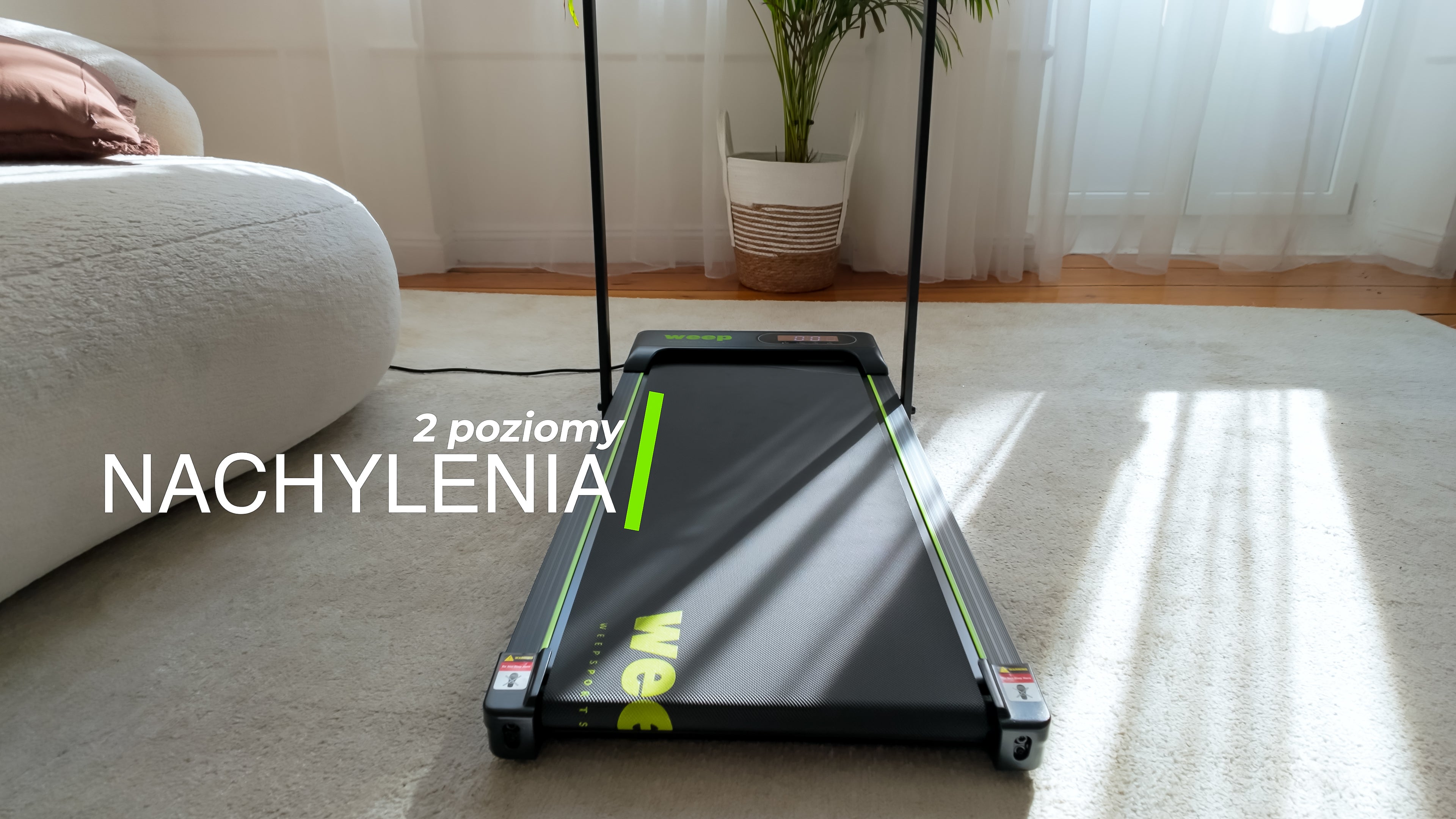 Bieżnia WEEP Lite LT100X to urządzenie do chodzenia i biegania w domowych warunkach. Dzięki prędkości do 10 km/h, manualnej regulacji kąta nachylenia oraz kompaktowej konstrukcji, świetnie sprawdzi się zarówno w małych mieszkaniach, jak i w biurze.