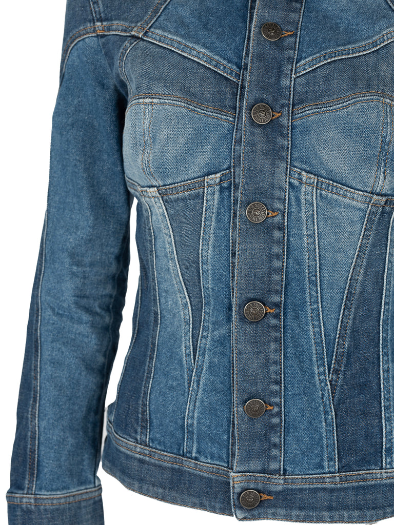 Wykonana z łączonych różnych odcieni jeansu, co nadaje jej nowoczesny i modny wygląd, pozwalając na łatwe dopasowanie do wielu stylizacji i dodając jej unikalności.