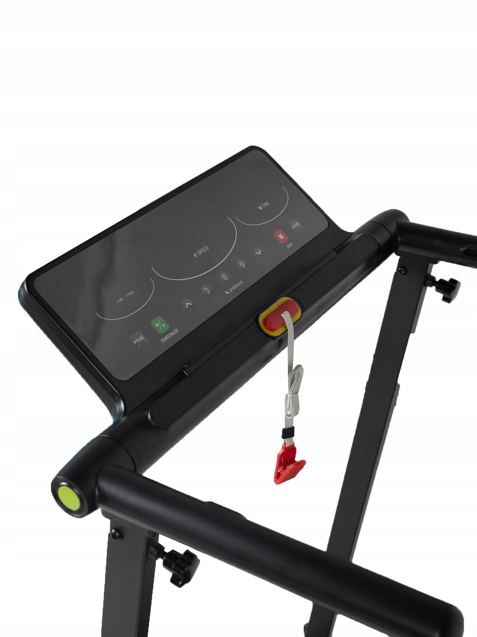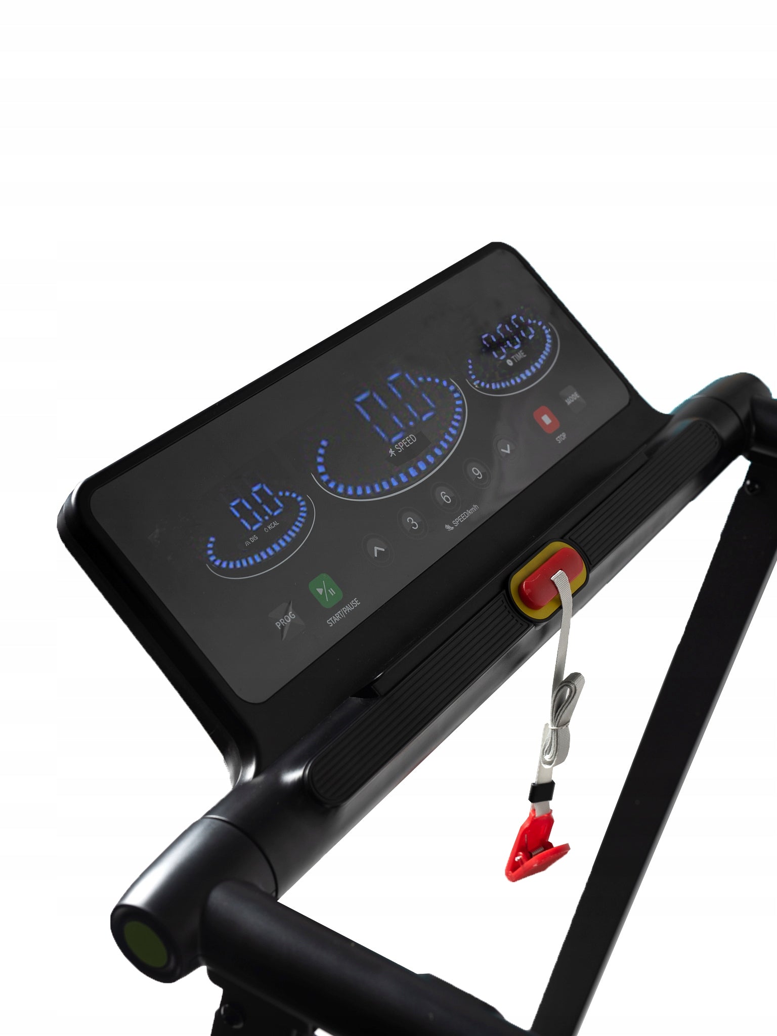 Antypoślizgowy, wielowarstwowy pas biegowy zapewnia dobrą przyczepność, a kluczyk bezpieczeństwa pozwala na natychmiastowe zatrzymanie urządzenia w sytuacji awaryjnej.